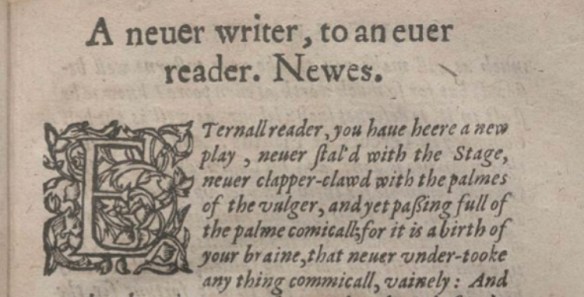 But we needn’t limit ourselves to anagrams in Shakespeare’s First Folio. A 1609 Quarto of Troilus and Cressida begins with a curious “Epistle.”